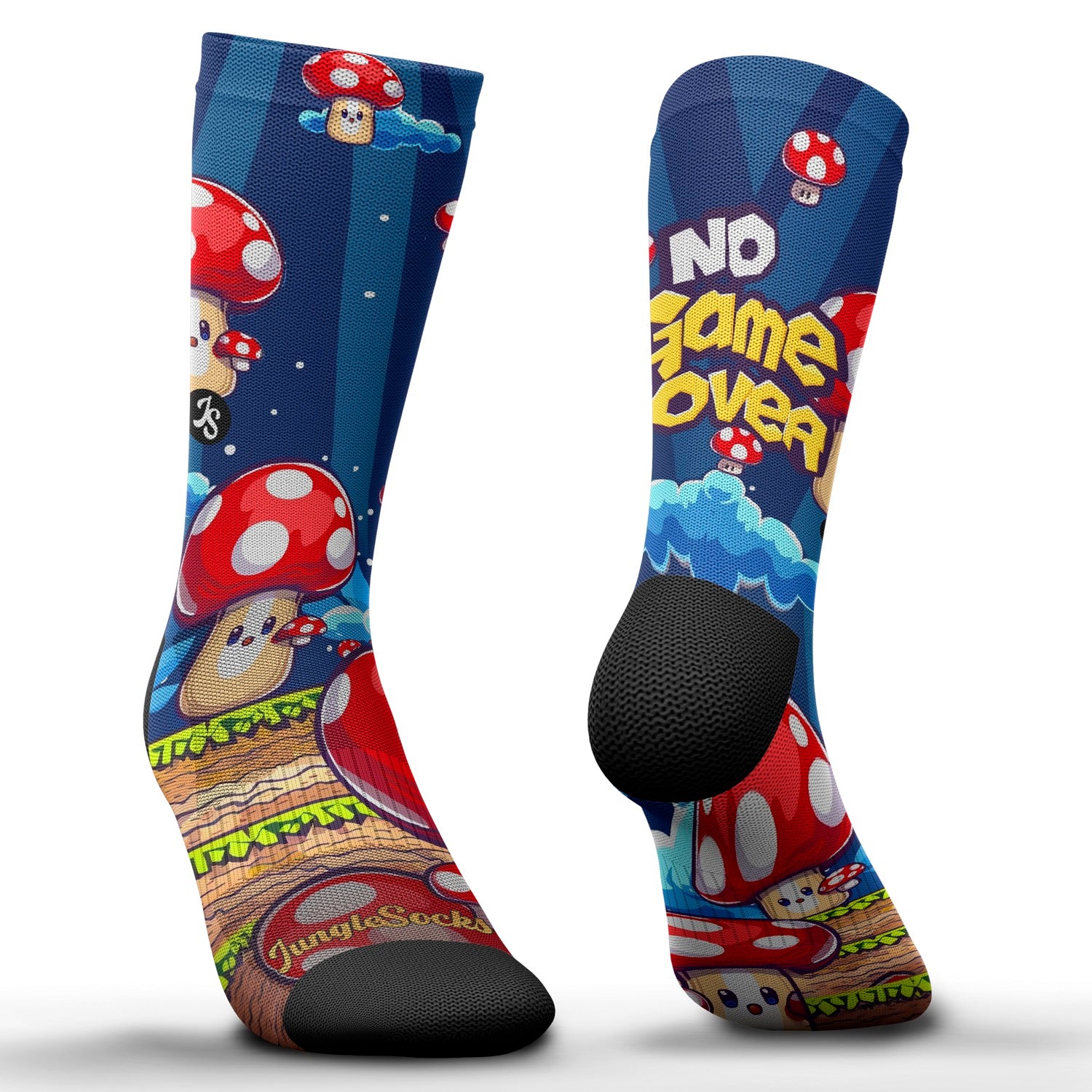 Niveau supérieur pour vos pieds : ces chaussettes techniques transforment votre entraînement en le jeu rétro ultime. Des champignons qui ne vous rendent pas plus grand, mais vous gardent plus au sec pendant que vous sautez entre les tuyaux vers votre prochain record personnel. Pas de game over!