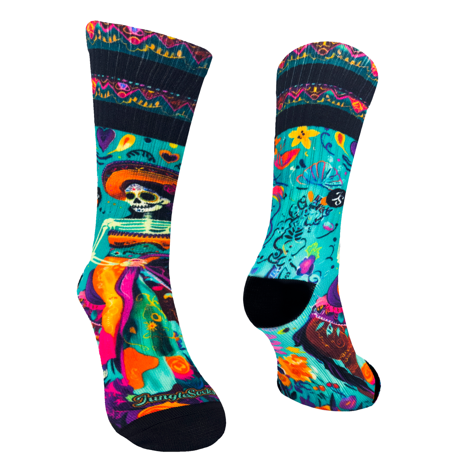 La fête au-delà de la mort n'avait jamais été aussi élégante : une Catrina à cheval galopant entre des soucis et des bougies, faisant danser même les squelettes au rythme de son passage. Qui a dit que la mort ne sait pas s'amuser ? Avec ces chaussettes, tes pieds fêteront comme s'il n'y avait pas de lendemain (bien qu'il y en ait un, et avec plus de style que jamais).